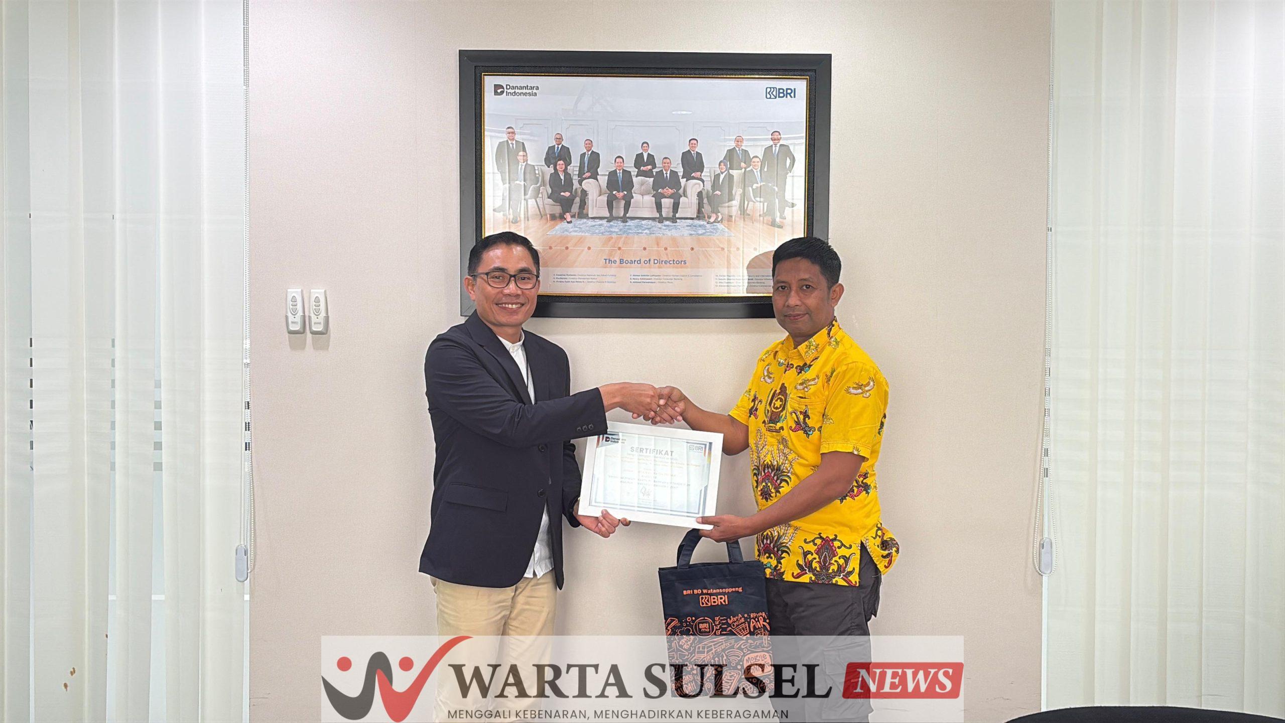 Penghargaan tersebut diserahkan langsung oleh Pimpinan Cabang BRI Watansoppeng Rahmatulloh Habibi di Kantor Cabang BRI Watansoppeng. Jumat (13/2/2026).