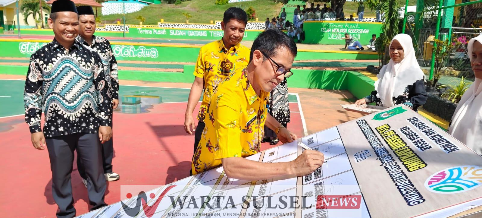 WARTASULSELNEWS.COM – Dinas Pendidikan dan Kebudayaan (Disdikbud) Kabupaten Soppeng melalui Sekretarisnya, Dr. Nur Alim, M. Pd mendukung penuh serta memberikan apresiasi kepada Pondok Pesantren Yasrib Lapajung atas penandatanganan komitmen bersama Deklarasi Sekolah Ramah Anak (SRA) dan Kampanye anti Bullying di Madrasah. Kamis, (2/4/2026).