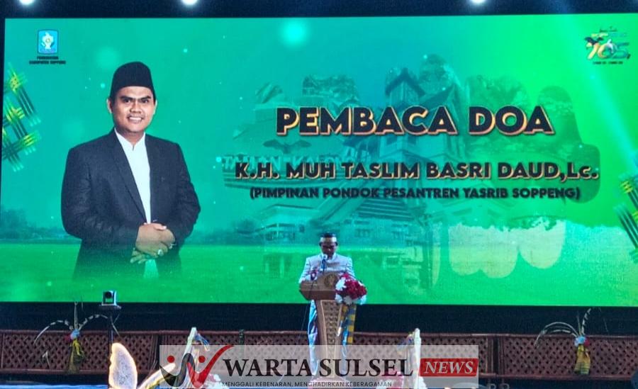 WARTASULSELNEWS.COM – Pimpinan Pondok Pesantren Yasrib Soppeng, H. Muh.Taslim Basri, Lc, didaulat membacakan doa di acara puncak Hari Jadi Soppeng (HJS) Ke -765 yang digelar di Gedung Lapatau Kabupaten Soppeng. Rabu (8/4/2026).