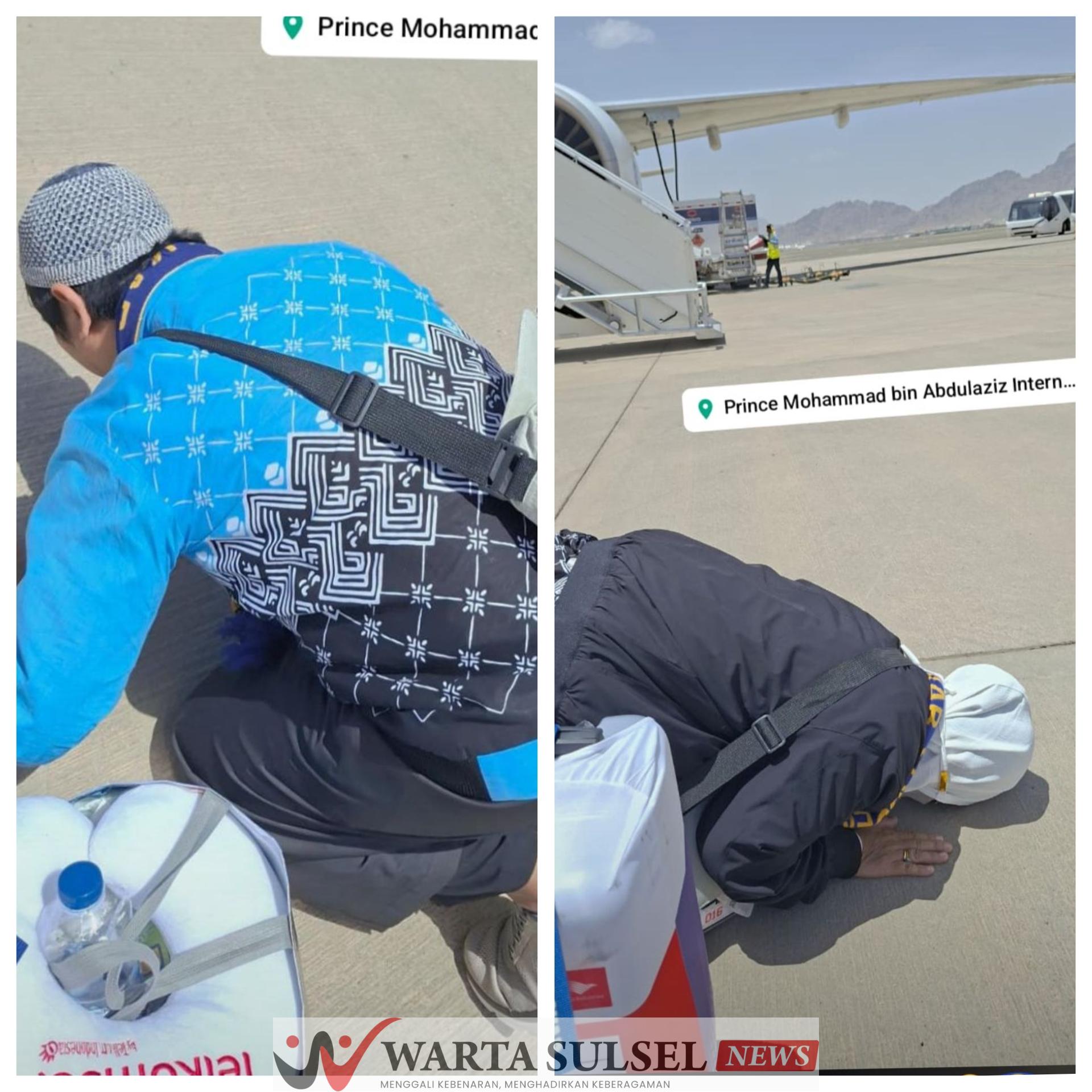 WARTASULSELNEWS.COM – Suasana haru dan bahagia mewarnai kedatangan ratusan jemaah haji asal Kabupaten Soppeng, Sulawesi Selatan, yang tergabung dalam kelompok terbang (kloter) 1 Embarkasi Makassar. Mereka tiba dengan selamat di Bandara Amir Mohammed bin Abdul Aziz, Madinah, Rabu sore Pukul 17. 15 waktu Arab Saudi (22/4/2026).