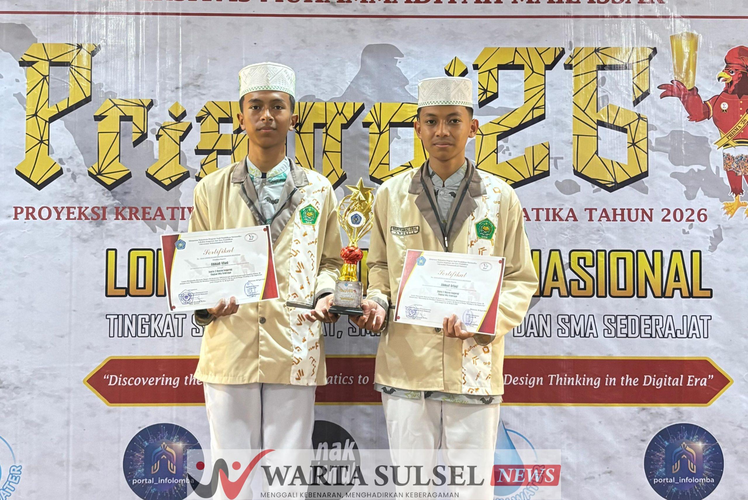WARTASULSELNEWS.COM – Prestasi membanggakan kembali ditorehkan oleh siswa Madrasah Aliyah (MA) DDI Pattojo Kabupaten Soppeng pada lomba Matematika Nasional tingkat SD/Sederajat, SMP/Sederajat, SMA/Sederajat yang diselenggarakan oleh Himpunan Mahasiswa Program Studi Matematika Fakultas Keguruan dan ilmu Pendidikan Universitas Muhammadiyah Makassar.